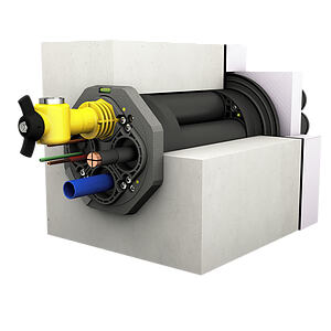 Kombiniertes Außendichtelement zur Ergänzung der Mehrspartenhauseinführung PolySafe zur Einbindung vorhandener Gebäudeabdichtungen.
